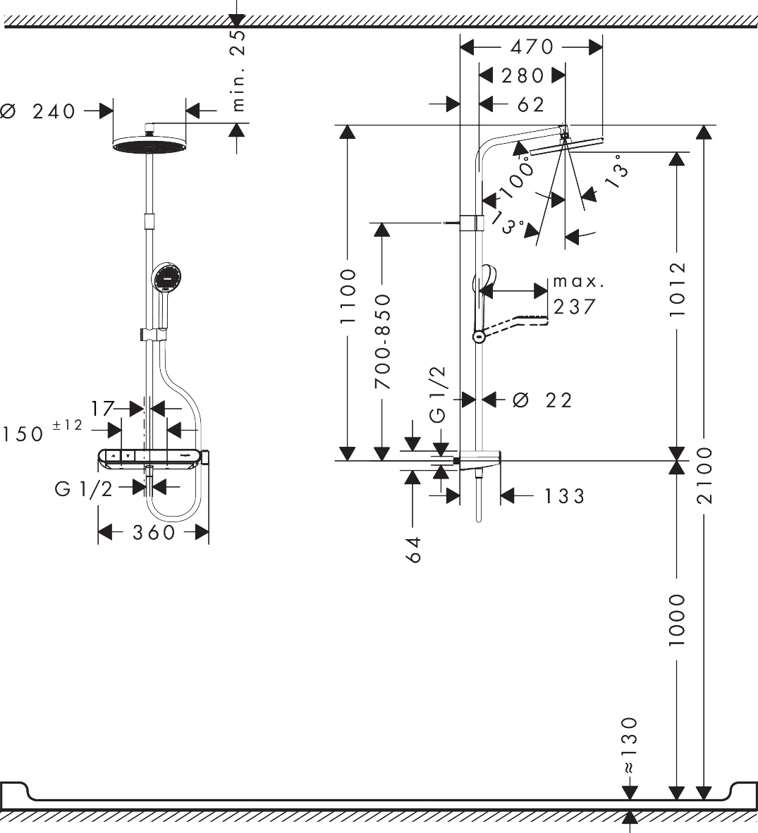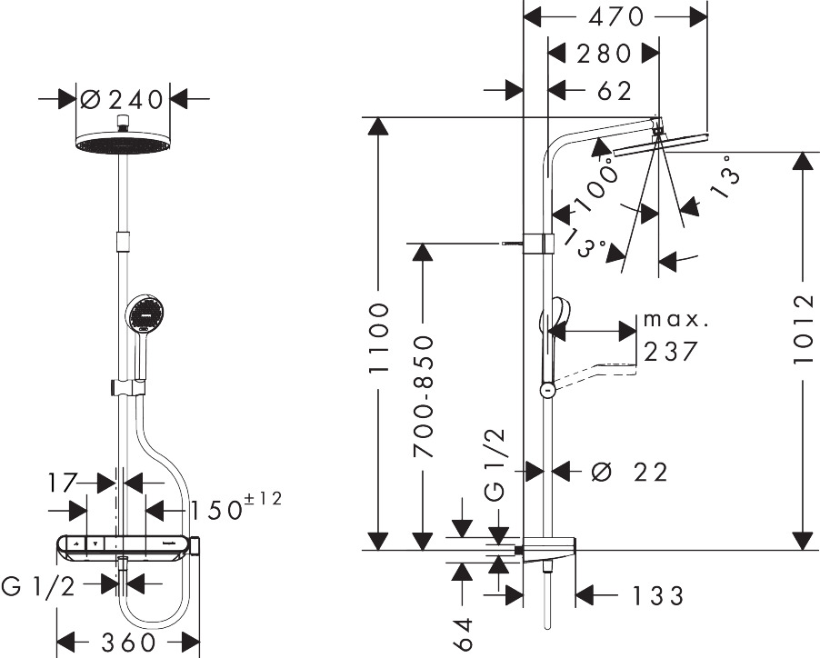 - 管道中心距离: 150 mm ± 12 mm